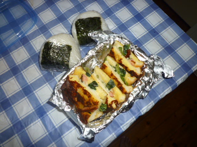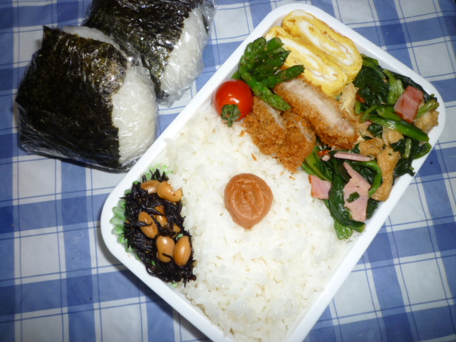 (朝ごはん⇒若菜おにぎりポチギ入り)